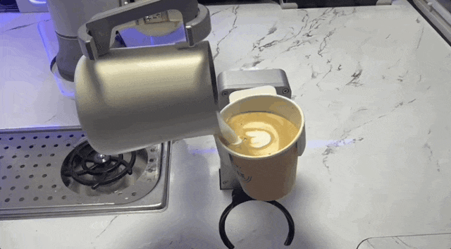 隔邻的安诺AI拉花咖啡机械人咖啡伙计,机械臂精准运转,接咖啡、拉花等一系列操做,1分多钟,一杯拉花咖啡便递到不雅众手中。“味道很正,制做又快,能感遭到中国智能制制的硬实力。”市平易近徐先生赞赏道。