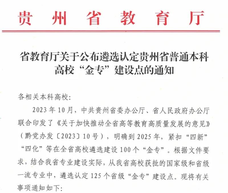 近日,贵州省教育厅发布贵州省通俗本科高校“金专”扶植点的认定成果,贵州理工学院机械设想制制及其从动化、飞翔器制制工程、材料科学取工程四个专业获批省级“金专”扶植点。