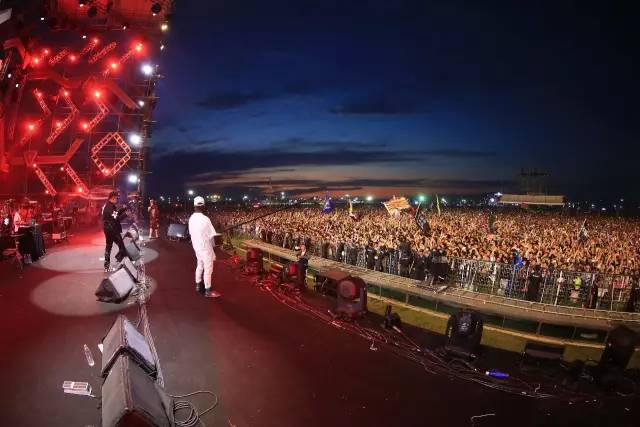 夜幕,最初的狂欢正式,扭曲机械的现场才是实正充满男性荷尔蒙的张北范。台上四射的表演,躁动pogo的人群,热血、激荡的乐迷们巴望嗨翻张北的整个草原。